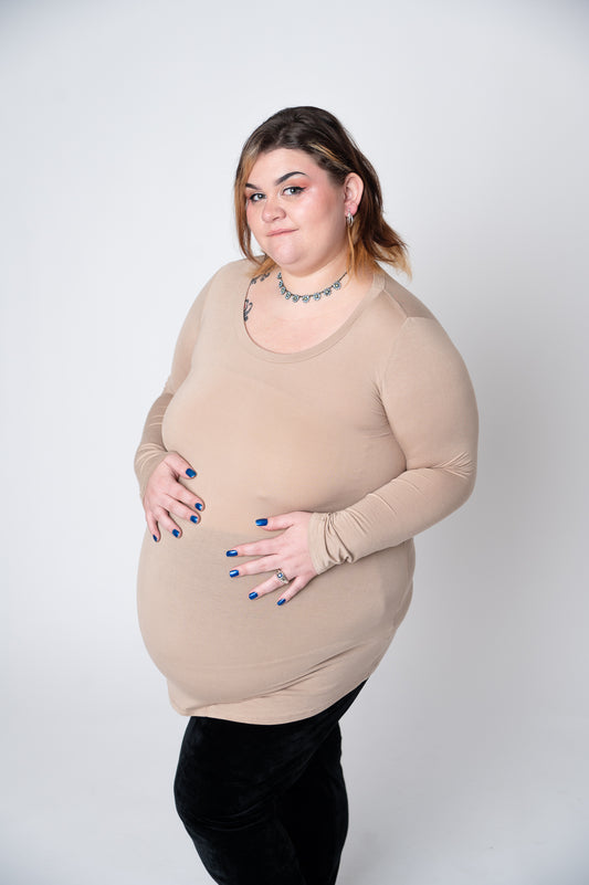 Bell-Sleeve Maternity Top with Faux Wrap Tie