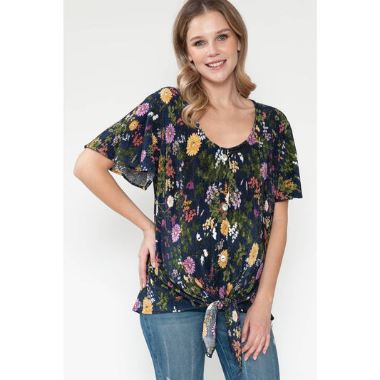 Maternity Floral Print Button Tied Ruffle Basic Top
